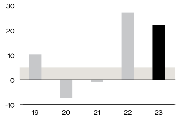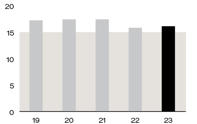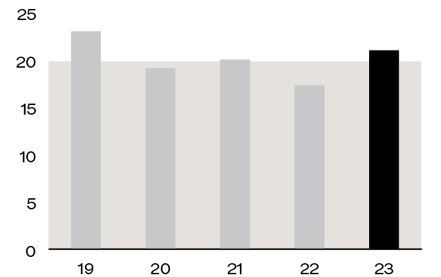 *Trend mot att uppnå målet baserat på 2023 års resultat
